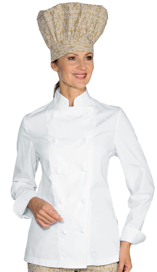 Bluza Isacco model Lady Chef Jacket to idealne połączenie stylu, funkcjonalności i komfortu. Dzięki slimowanemu krojowi, długim rękawom oraz kieszeni na rękawie, bluza spełnia wszystkie wymagania profesjonalnej odzieży kucharskiej. Biały kolor nadaje jej klasycznego, eleganckiego wyglądu, a wysokiej jakości materiał zapewnia wygodę nawet podczas długich godzin pracy.