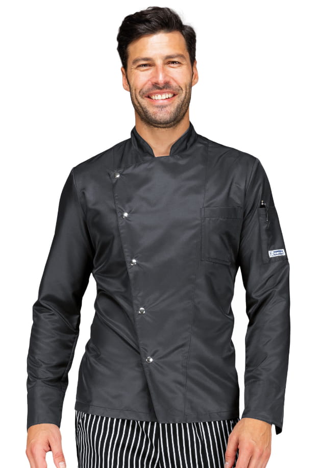 Bluza kucharska szefa kuchni BELFAST 057281 CZARNA ISACCO – elegancja i funkcjonalność w jednym