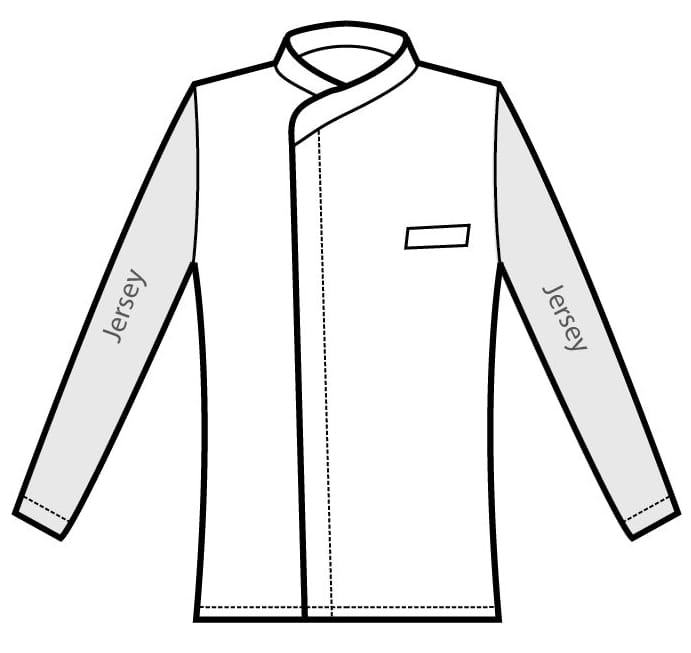 - Tył z bawełny Jersey: Tył bluzy wykonany z bawełny typu Jersey o gramaturze 180g/m² zapewnia oddychalność, miękkość i komfort, co sprawia, że bluza jest idealna do długotrwałego użytkowania w kuchni.