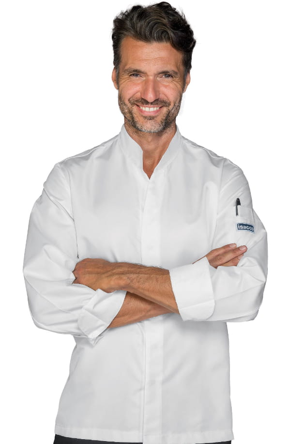 Bluza kucharska Isacco model Sincler 058880 w klasycznym białym kolorze to doskonały wybór dla szefów kuchni, którzy szukają połączenia nowoczesnego stylu z wygodą i funkcjonalnością. Zapewnia nie tylko profesjonalny wygląd, ale i komfort podczas długich godzin pracy w kuchni.