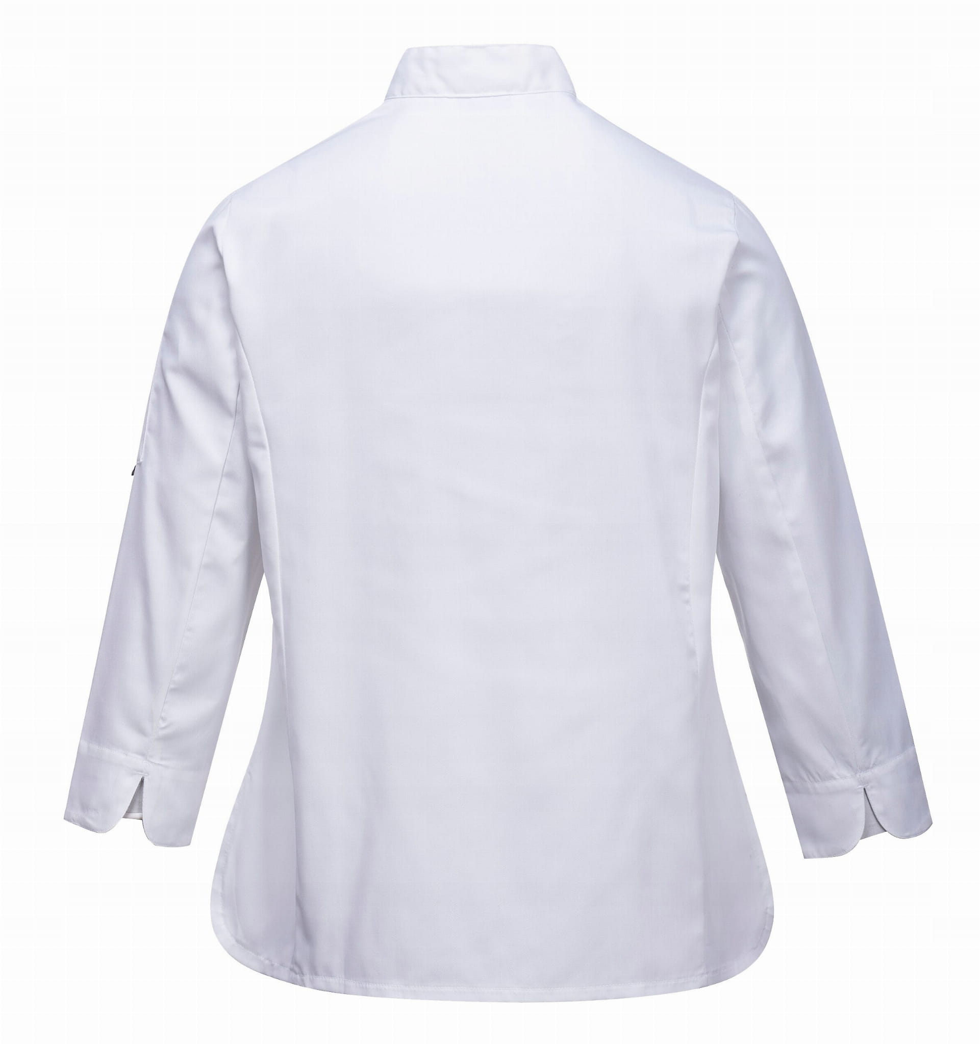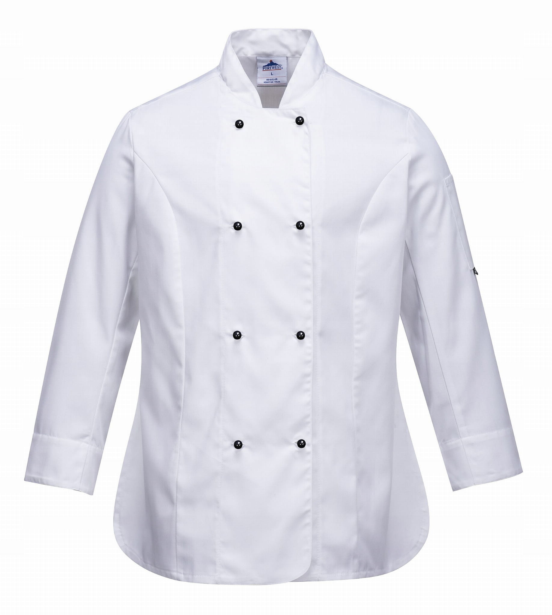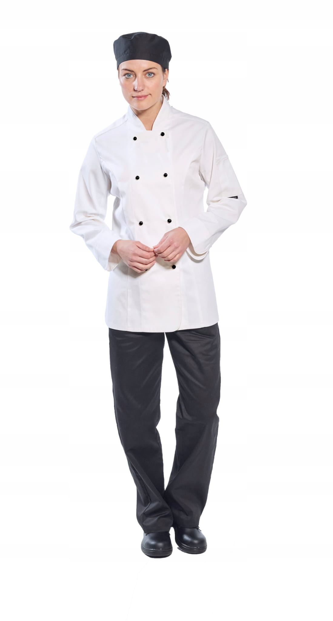 Model Rachel C837 to elegancka i funkcjonalna damska bluza kucharska od firmy PORTWEST, stworzona z myślą o komfortowej pracy w intensywnych warunkach kuchennych.