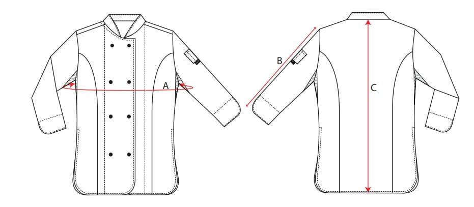 Kontrastowa tkanina Mesh: Pod pachami zastosowano wstawki z siatki MeshAir™ wykonanej w 100% z poliestru (gramatura 110g), co znacznie poprawia wentylację, zapewniając komfort użytkowania nawet w najgorętszych warunkach kuchennych.