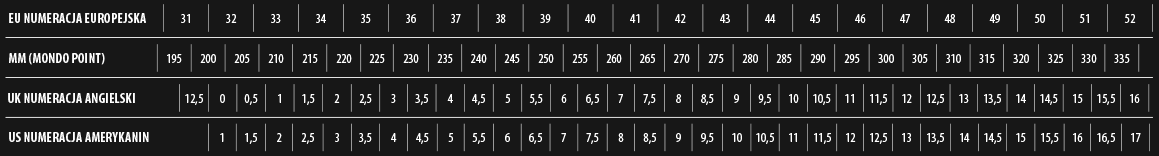 Tabela rozmiarowa: