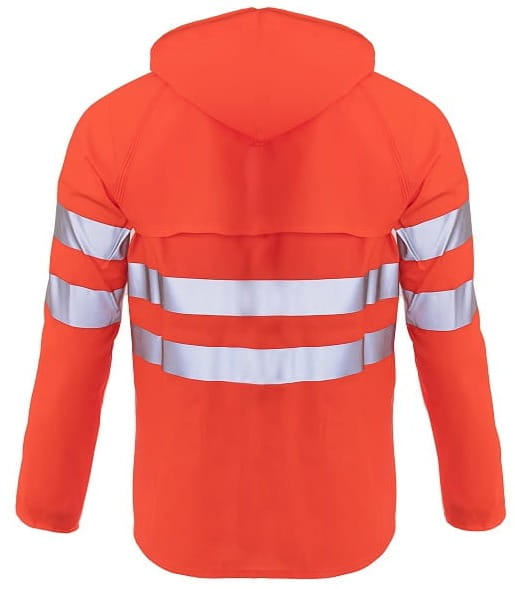 - Umiejscowienie: Na całym obwodzie kurtki i rękawów naniesione są po dwa pasy odblaskowe, co zapewnia doskonałą widoczność użytkownika w słabych warunkach oświetleniowych.