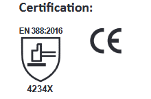 - Część dłoniowa (ochronna): Dwoina wołowa – materiał o wysokiej odporności na przetarcia, przecięcia i inne uszkodzenia mechaniczne, zapewniający solidną ochronę dłoni.