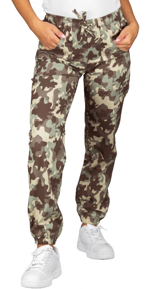 Spodnie kucharskie joggery unisex firmy Isacco model Mimetico 15 z elastycznymi nogawkami.